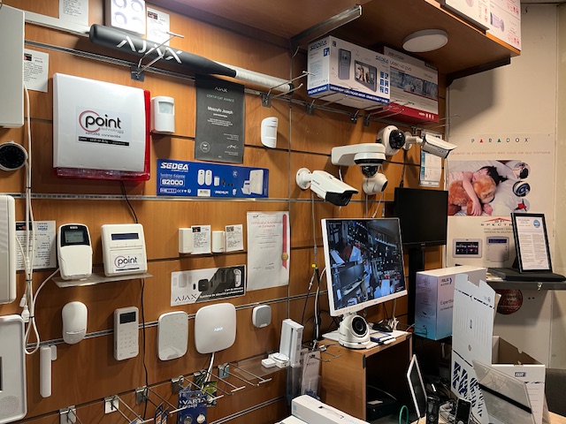 Les équipements des marques Hikvision, Hera pro, Ajax, Risco sont en présentation.